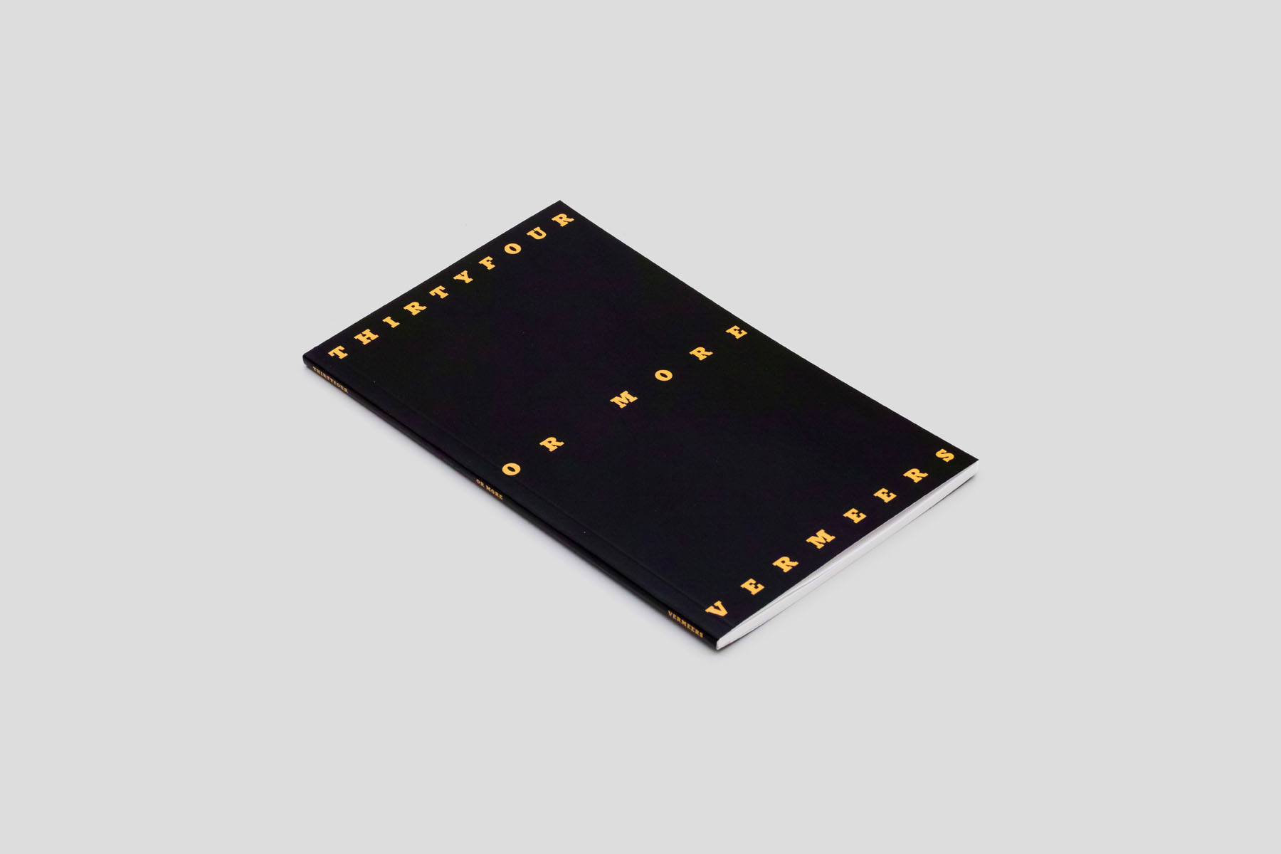 Written and published in conjunction with the creation and exhibition of an homonymous group of paintings, Thirtyfour Or More Vermeers encourages a multifaceted reading of the paintings. First, their words are reformatted to make explicit their poetic quality. Then, the authenticity of three of the paintings is questioned. Finally, each painting is reproduced in the form of a late-eighties graphic-art mock-up, complete with color breakdowns for their digital counterparts. It was these digital counterparts that were projected onto Tyvek to aid the creation of the paintings.